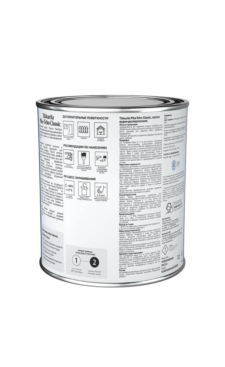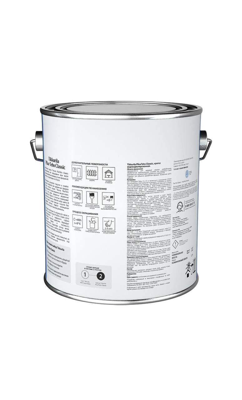 Купить TIKKURILA PIKA TEHO CLASSIC краска акрилатная, для деревянных фасадов, матовая в интернет-магазине colorvbg.ru с доставкой. TIKKURILA PIKA TEHO CLASSIC краска акрилатная, для деревянных фасадов, матовая, артикул : читать описание, характеристики, фото