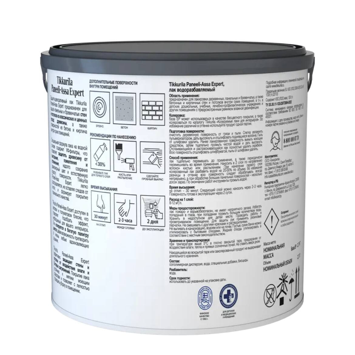 Tikkurila Paneeli-Assa Expert эффективно защищает стены и потолки от воздействия влаги и бытовых загрязнений. Лаковое покрытие устойчиво к воздействию мягких моющих средств и позволяет легко проводить уборку в помещении.